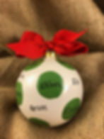 These stunning Christmas balls will add the perfect "pop" of color and originality to your tree! You make it unique by customizing the colors of the dots, letters/names and ribbon. These unique hand-painted 3-D ball ornaments make an awesome gift for anyone! Why not give a gift that keeps giving year after year? They make a great personalized and special gift for "hard to buy for".....host/hostess, teacher, co-worker, anniversary, etc.